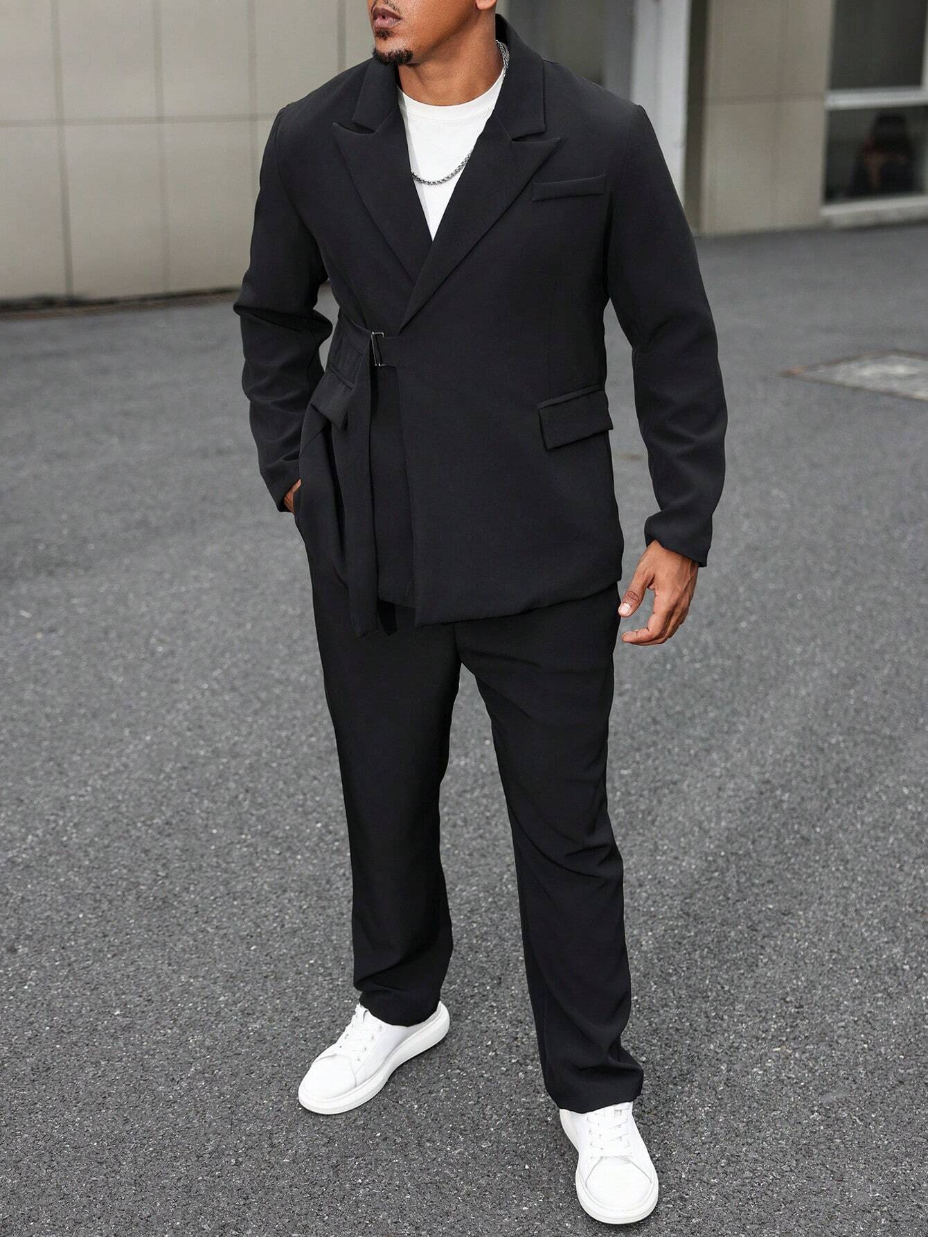 Ensemble de costume décontracté pour homme avec col canon style cavalheiro pour homme.